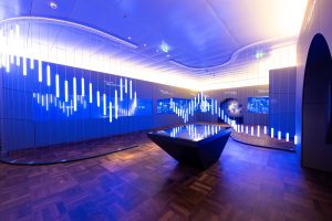 Das Deutsche Börse Visitors Center mit Blick in einen der letzten aktiven Handelssäle weltweit und eine selbsterklärende Ausstellung im historischen Börsengebäude.
